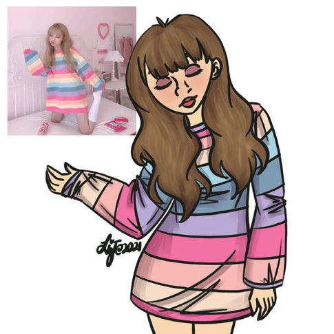 Videos and slides showing my drawing process, including references, sketches, line art, colors, and final details.